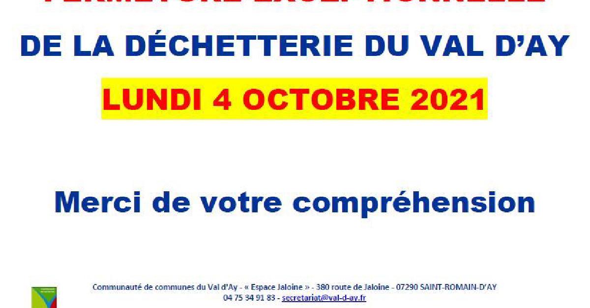 Fermeture exceptionnelle de la déchetterie lundi 4 octobre